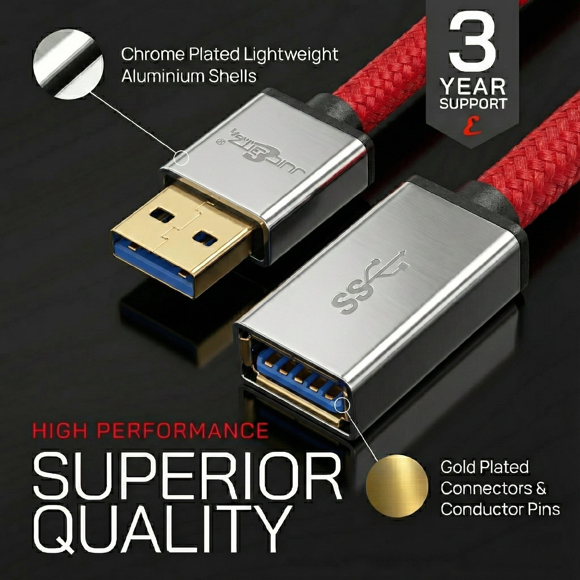 Braided Heavy Duty USB Charger Cable Data Sync Wire Lead for iPhone, iPad, iPod - Red