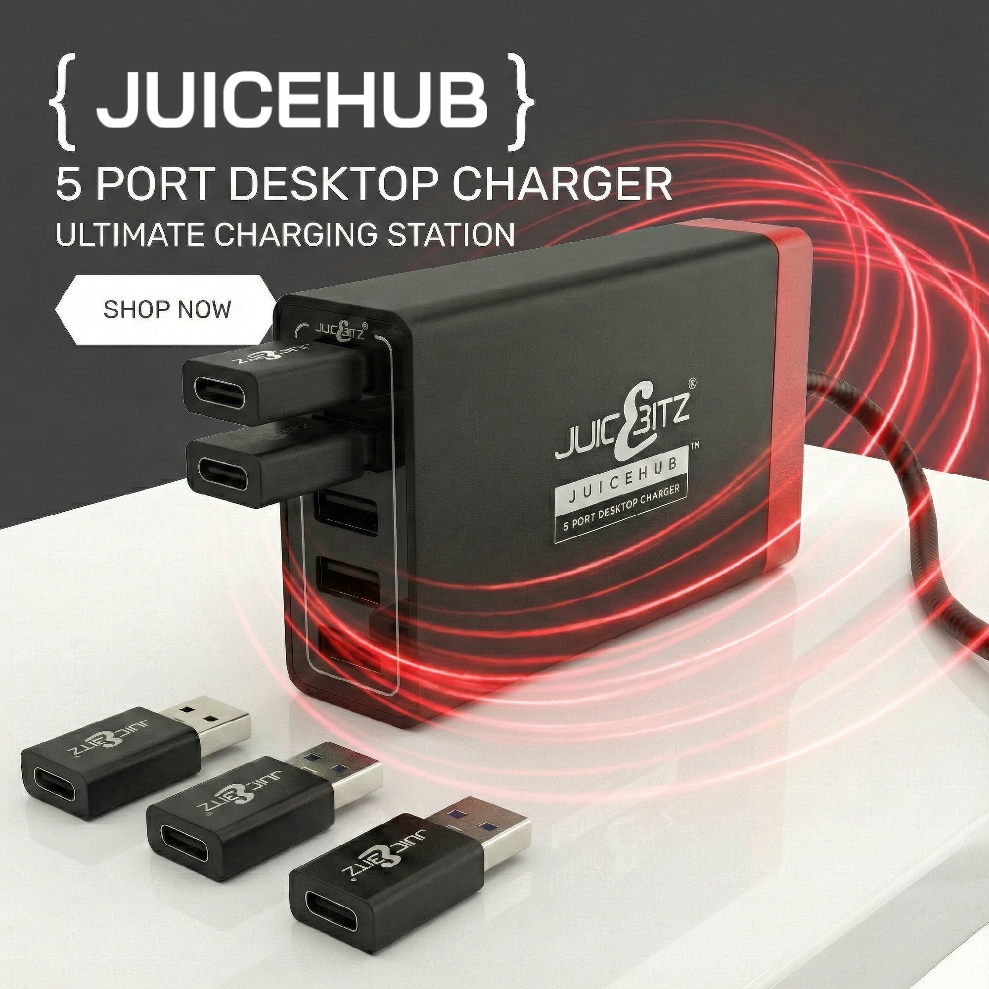 JuicEHub™ 40W 8A 5V Multi 5 Port USB Mini Desktop Charger - Black